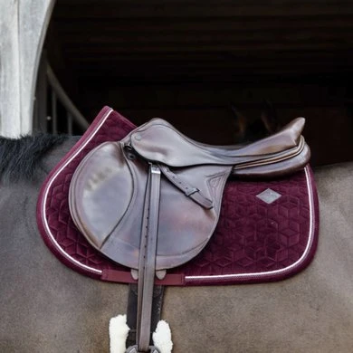 Dit zadeldoek Saddle Pad Velvet met dubbel gedraaide bies is zeer stijlvol en elegant. Biedt een schok dempende functie aan tussen de rug van het paard en het zadel en voorkomt eventuele wrijving. Het logo is centraal geplaats zodat er nog mogelijkerwijs plaats is voor borduurwerk. Er zijn bovenaan geen vervelende bandjes aanwezig om het zadel vast te maken, enkel bandjes voor de singel. Wasbaar op 30°, geen droger.