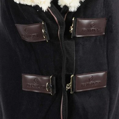 De Fleece Show Rug Heavy heeft de looks en gevoel van een echt wollen deken maar zonder alle nadelen die daarbij komen kijken. Voor een optimaal comfort en een stijlvolle look is er artificiële wol rondom de hele nek. Het is het ideale deken om te gebruiken na training of na het wassen op koudere dagen. Deze deken absorbeert het zweet en water en houd je paard warm. Het deken is afgewerkt met dubbele sluiting vooraan en verstevigd met imitatieleder. De gekruiste singels zijn bevestigd aan de binnenzijde van het deken en zijn verstelbaar en afneembaar zodat deze dekens ook als showdeken gebruikt kan worden. De bruine artificieel lederen bies, het Kentucky logo in imitatie leder en artificiële wol aan de nek zorgen voor een zeer stijlvolle look. Wasbaar in de machine op 30°, niet in de droger