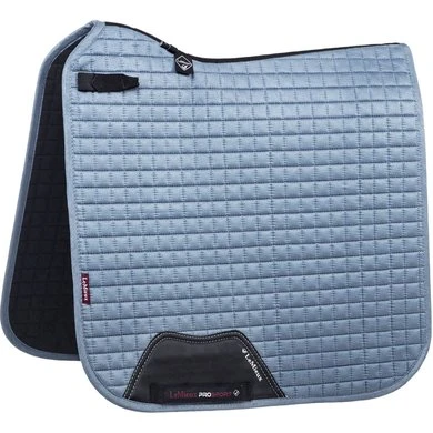 Nu met onze super zachte suede binding en nieuwe PU lederen singelbescherming, zet dit prachtige suede dressuur zadeldek nieuwe normen in stijl en comfort. Maak je LeMieux-look compleet in combinatie met bijpassende polobandages en vliegenkappen. Er zijn kleuren voor de meeste paarden en smaken. Ontworpen voor een breed scala aan dressuurzadels met zijn hoge schoft en elastische D-ringlipjes. De luxueuze suède stof en de nieuwe zachte suède binding worden aangevuld met de superzachte bamboevoering. Deze voering absorbeert en reguleert het zweet onder het zadel en is comfortabel en zeer huidvriendelijk. De wrijving wordt tot een minimum beperkt, zelfs bij gevoelige paarden. De singellus is voorzien van drie interne lusjes om de singel te bevestigen.