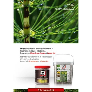 Leovet Kruidenvoer voor paarden. Oogst-verse kwaliteit in een hersluitbare doos! De waardevolle zuivere gezondheidsbevorderende kruiden verdienen speciaal behoud! De nieuwe versheidsdoos biedt bescherming voor het KruidenVoer van leovet en gemak voor de ruiter aan. Een optimaal mengsel van heermoes, netelkruid, zoethout, munt, ocrawortel, venkel en de tijm helpen voor gezonde ademhalingskanalen en luchtpijptakken. De geschikte doos van de leovet versheid met handvat leent zich aan multifunctioneel hergebruik.