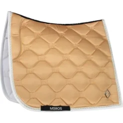 Mix en match met je paardrijkleding voor een paardensportlook van top tot teen. Een prachtig vervaardigd zadeldek dat een unieke toevoeging is aan je Tack-kast! Met dubbele touwpipping in contrasterende kleuren en een gouden of zilveren uitgesneden diamanten metalen logo: jij en je paard zullen verliefd worden op dit prachtige zadeldek.