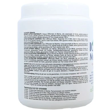 Gel met ijs effect. Een natuurlijk product met een basis van Mentol, Duivelsklauw en Arnica voor een onstekkings remmende en oplevend effect. Wordt vaak gebruikt in het geval van fysiek trauma om hematomen, tendinitis, slijmbeursontsteking en verstuikingen te vermijden en na intensieve training om de pijn in de overbelaste benen te verzachten.