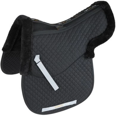 Voor meer gevoelige paarden, of paarden die wat extra bescherming nodig hebben, is deze numnah half gevoerd met fleece om zachte demping te bieden en de druk te verminderen terwijl de luchtstroom toeneemt. Half-zachte voering voor comfortabele demping op belangrijke drukpunten. Schuimkern onder zadelgedeelte voor meer comfort. Zeer ademende 3D Air Motion mesh-zones langs de rug. Raak de sluitbanden vast. Mag in de wasmachine.