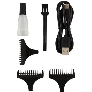 Inclusief: USB-laadkabel, drie afstandhouders (0.5/1/1.5 mm), een borstel en olie.