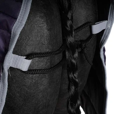 De Premiere staldeken All Year heeft een buitenzijde van 210D nylon, een nylon voering en een vulling van 200g polyfill. De deken is waterafstotend (niet waterdicht!) en anatomisch gevormd met een dubbel gestikte rugnaad. De deken heeft een verstelbare dubbele gespsluiting op de borst met quick release clips en klittenband. Daarnaast heeft de deken verstelbare kruissingels en verstelbare, afneembare en elastische bilriemen.