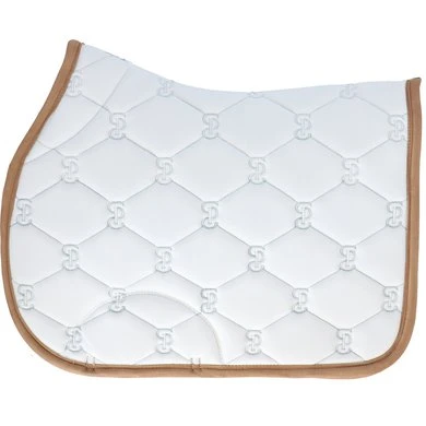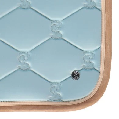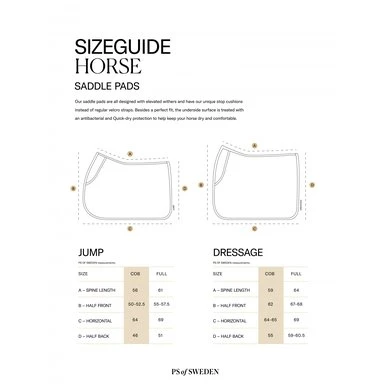 Anatomisch gevormd zadeldek met doorgestikt PS-monogram, suède binding en zadelsingelbescherming. Onze zadeldekjes hebben extra ruimte aan de zijkanten en onze unieke stop-kussens die het zadeldek op zijn plaats houden onder het zadel. Onderkant is van Quick-Dry materiaal dat vocht transporteert en antibacterieel is.