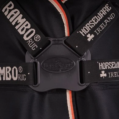 De Rambo Airmax Cooler is super licht en super effectief! Deze deken is een polyester airmesh cooler met klassiek design. Het materiaal heeft een zachte en absorberende binnenkant die vocht wegdrijft terwijl de airpockets het paard warm houden. De gladde buitenkant zorgt ervoor dat het prima op stal gedragen kan worden zonder dat er hooi aan blijft hangen. Tevens is deze deken prima te gebruiken als onderdeken tijdens zeer koude dagen. Deken is voorzien van een Disc-sluiting op de borst, afneembare kruissingels, voorbeenuitsparingen voor een betere pasvorm en een bilkoord.