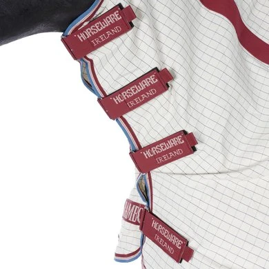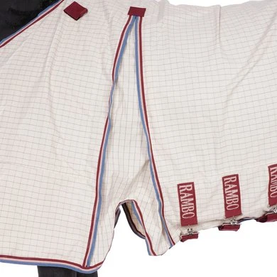 | Superieure zomerbescherming. Het Rambo® Optimo zomerdeken is gemaakt van polykatoen buitenstof met een 40% katoenmix voor superieur ademend vermogen en UV-bescherming in zomerse omstandigheden. Bijzonder geschikt voor bredere paarden omdat het de ultieme schoudervrijheid en beweging heeft dankzij de gepatenteerde splittechnologie. |