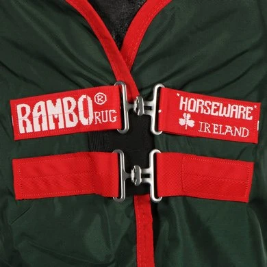 De Rambo Original Turnout 0gr kenmerkt zich door een zeer sterke buitenstof welke is gemaakt van waterdicht en ademend 1000D ballistic nylon. De binnenvoering bestaat uit permanent polyester welke ervoor zorgt voor een glimmende vacht. De binnenzijde van de deken is voorzien van een permanente polyester antibacteriële laag. Dankzij deze werking wordt de groei van bacteriën, schimmels en mijten beperkt. Dankzij deze laag wordt de kans op infecties en allergieën verminderd. De deken is voorzien van een dubbele haak/oog sluiting op de borst, kruissingels, een bilkoord en een staartflap.