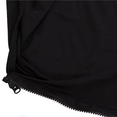 - Gezicht, nek, onderborst en buikflap worden vastgezet met ritssluitingen en achterbeenhoezen worden vastgezet met klittenbandsluitingen.