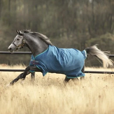 Flexibele deken voor alle seizoenen, met meer warmte en minder gewicht. Een unieke barrière-technologie heeft een buitenkant van 1000D polypropyleen die de waterdichte en ademende barrièrelaag eronder beschermt. Polypropyleen is een sterker alternatief voor het veel gebruikte polyester turnoutmateriaal. Wordt geleverd met antistatische, anit-bacteriële polyester voering en thermisch gebonden fiberfill. Klassieke originele snit met dubbele frontsluitingen. Beenbogen, reflecterende strips, hals- en voeringlussen, kruissingels en glansverhogende polyester voering. Thermobonded fiberfill voor superieure en langdurige warmteopslag. Hals apart verkrijgbaar.