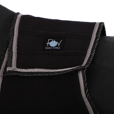 Absorberend en snle drogend. Van 100% niet pillende polyester 220 g/m². Randen versierd met een bies. Met zadeluitsparing, klittenbandsluiting op de schoft en staartriem.