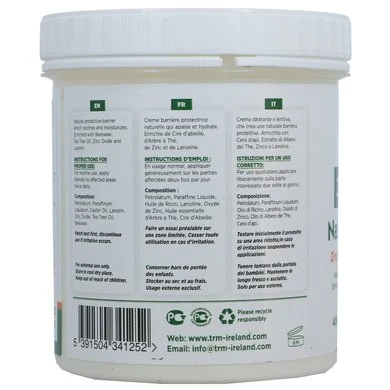 Natuurlijke beschermende barrière die verzacht en hydrateert. Verrijkt met Bijenwas, theeboomolie, zinkoxide en lanoline.