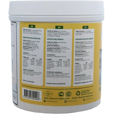 Het ideale supplement voor gestreste, hete of nerveuze paarden. Bevat zeer hoge niveaus van L-Ttryptofaan, een essentieel aminozuur en vitamine B1; naast de antioxidant vitamine E. Voer 25-50g/dag.