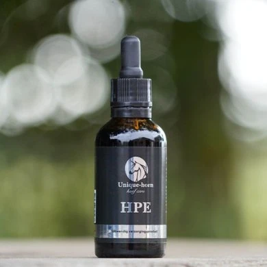 Unique Horn HPE is een speciaal ontwikkelde tinctuur om toe te passen bij aangetaste plekken in de witte lijn of hardnekkige rotstraal.