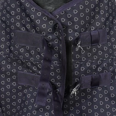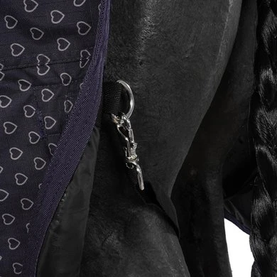 Waterdichte en ademende uitrukdeken van 600 denier polyester en fleece voering, passend bij onze Lucky Heart serie. Met dubbele borstsluiting, gekruiste riemen, lussen voor trapriemen en geïntegreerd filetkoord.