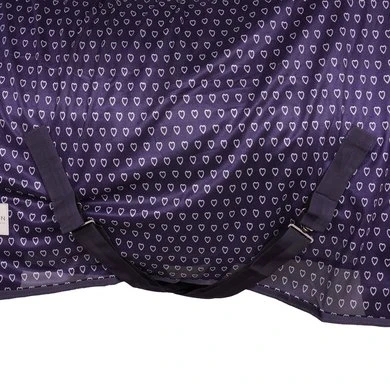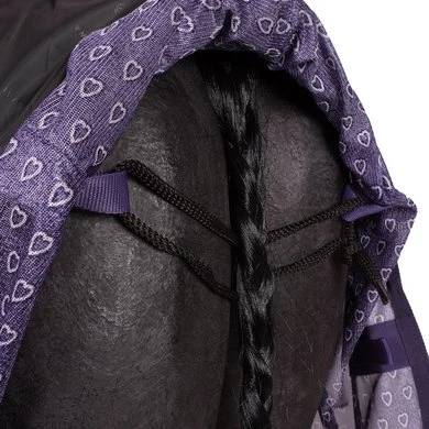 Lichtgewicht vliegendeken met hartjesprint, dubbele sluiting aan de voorkant, gekruiste banden met elastiek en filetkoord. Komt overeen met alle artikelen in de Waldhausen Lucky Heart-serie.