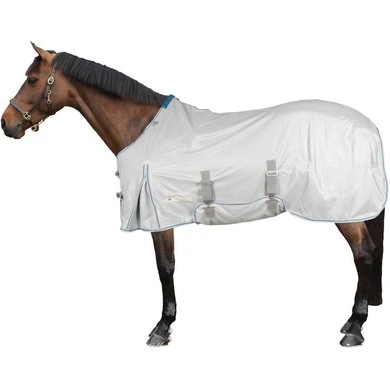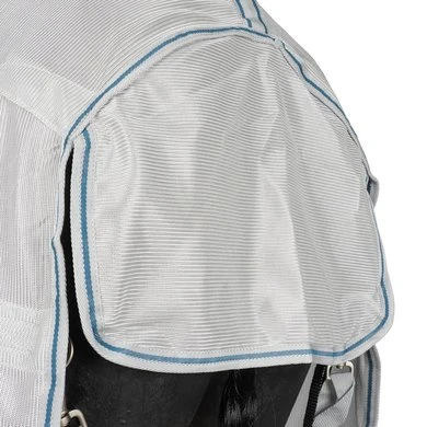 Hoge kwaliteit vliegendeken gemaakt van een fijnmazige stof. De buik- en staartflappen van de deken zorgen voor bescherming tegen vervelende insecten. De dubbele voorsluiting, schopplooi, filetkoord en beenriemen garanderen een perfecte pasvorm. Voor extra bescherming van de nek en manen van het paard adviseren wij het bijpassende nekdeel 44978527 .